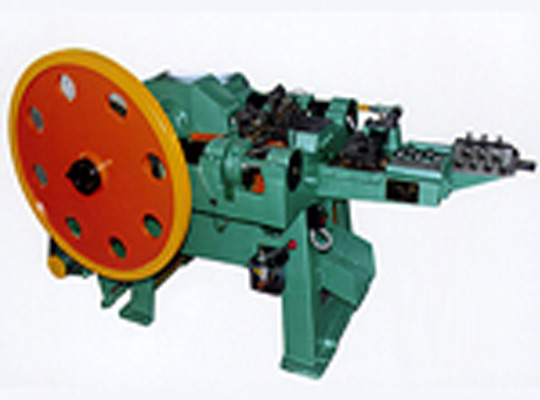 把絲拉好以后,通過全自動送線機頭,然后把拉好的絲送線機頭里面,生產出調好的半成品的釘子。